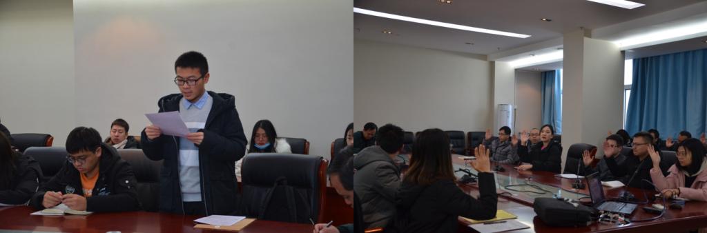 12月18日,中共光伏材料重点实验室党支部在科技楼A601会议室召开支部大会,讨论接收马明远、王宇欢、黄蓉、李瑞、任基宁五位同志为预备党员事宜。会议由支部组织委员马薇同志主持,全体师生党员参会。