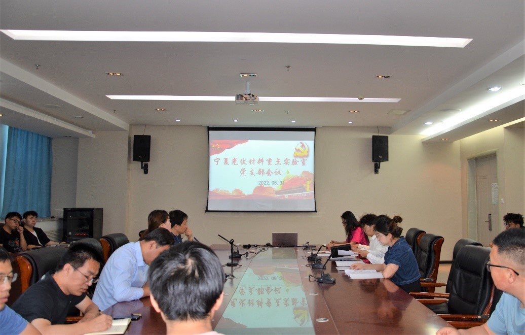 2022年5月31日,宁夏光伏材料重点实验室党支部在科技楼A601会议室召开支部大会,讨论接收程洵、施袭纯、孙博康3位同志为预备党员事宜。会议由支部组织委员马薇同志主持,本次参会党员共28名,会议严格按照组织发展程序进行。