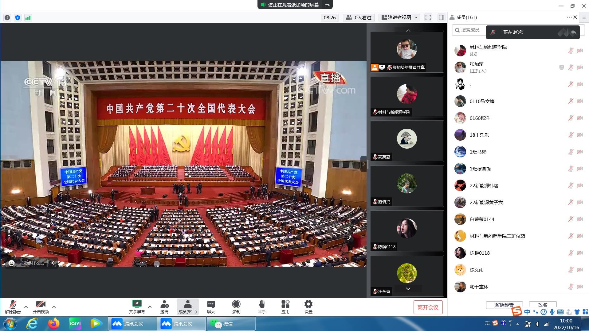 10月16日上午,中国共产党第二十次全国代表大会在北京人民大会堂隆重开幕。中共中央总书记习近平代表第十九届中央委员会向大会作报告。公司全体师生,在抗疫一线、宿舍、家庭等地,通过手机、电脑、电视认真收听收看党的二十大开幕会盛况。