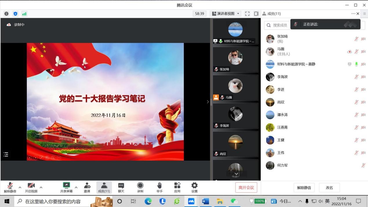2022年11月16日下午,公司直属党支部各党小组及全体教职员工通过线上形式开展第二次党的二十大精神学习活动,活动由直属党支部各党小组组长主持,全体教职工参加。