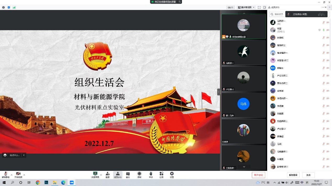 2022年12月7日晚上,公司研究生团支部采用线上会议形式召开了“学习二十大、永远跟党走、奋进新征程”学习教育专题组织生活会。公司全体研究生团员参加,会议由团支部书记何显主持。