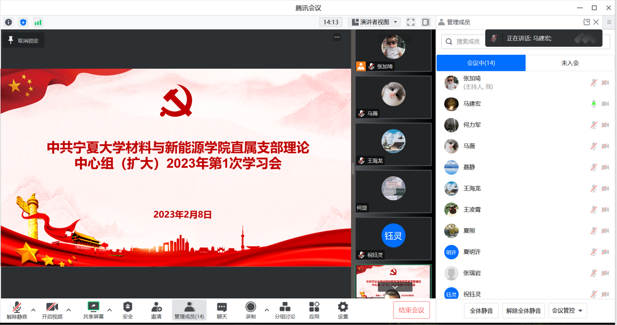 2023年2月8日上午,公司通过线上形式召开2023年直属党支部理论中心组(扩大)第1次学习会,直属党支部书记马建宏主持会议,直属党支部委员、各党小组组委会成员参加会议。