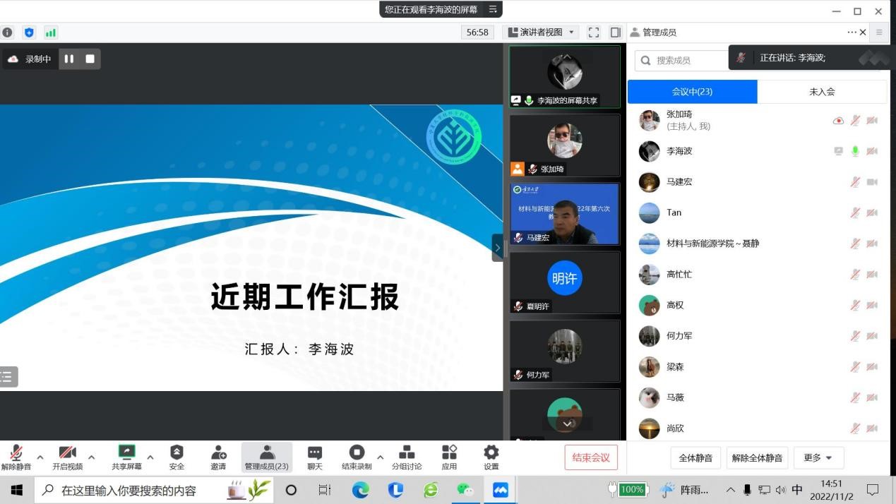 会上,公司领导分别对近期开展的各项工作情况做了详细的汇报和总结。夏明许经理从疫情防控回顾、人才工作推动、员工培养工作进展、科研与地方合作等4个方面对公司总体工作进展情况做了总结。