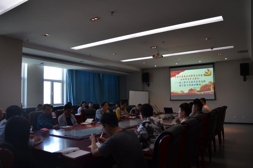 9月8日上午,中共宁夏光伏材料重点实验室支部在科技楼A610召开扩大会议,深入学习习近平总书记视察宁夏工作重要讲话精神,全体师生参加,会议由党支部书记何力军同志主持。
