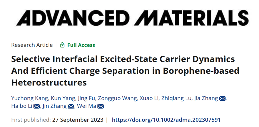 近日,公司在二维范德瓦尔斯异质结载流子动力学研究领域取得重要研究进展,有关成果以《Selective Interfacial Excited-State Carrier Dynamics And Efficient Charge Separation in Borophene-based Heterostructures》为题发表于材料学国际顶级期刊《Advanced Materials》(IF=32.08,中科院一区TOP)上,2026世界杯官网为第一单位,2026世界杯官网马薇副教授为通讯作者,2026世界杯官网2020级微电子学与固体电子学硕士研究生康育冲为第一作者,2026世界杯官网李海波教授、德国马克斯·普朗克研究所张进博士和德国马克斯·玻恩研究所张佳博士为共同通讯作者。