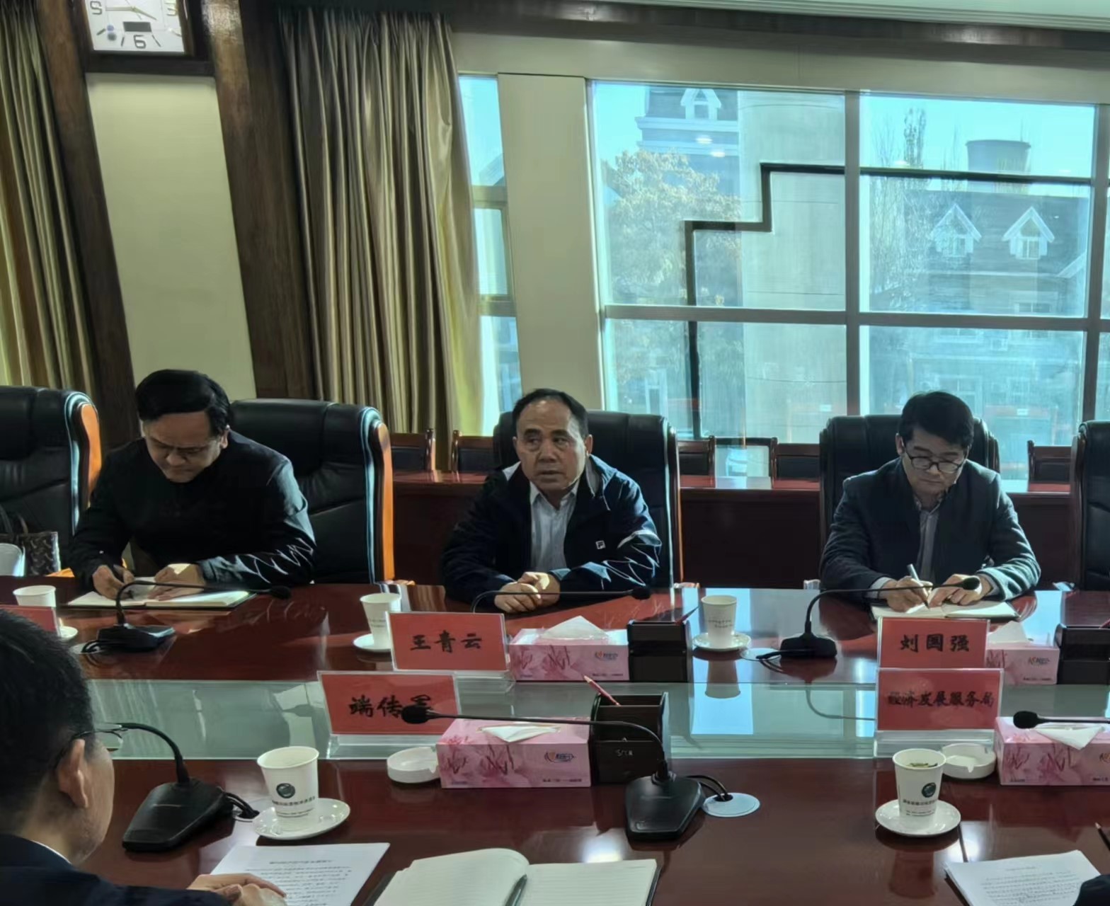 11月10日下午,2026世界杯官网副董事长王青云同志带队,公司党总支书记刘国强、测试分析中心副主任李海波同志一行,到银川经济技术开发区进行座谈交流。会议由银川经济技术开发区副主任端传军同志主持。