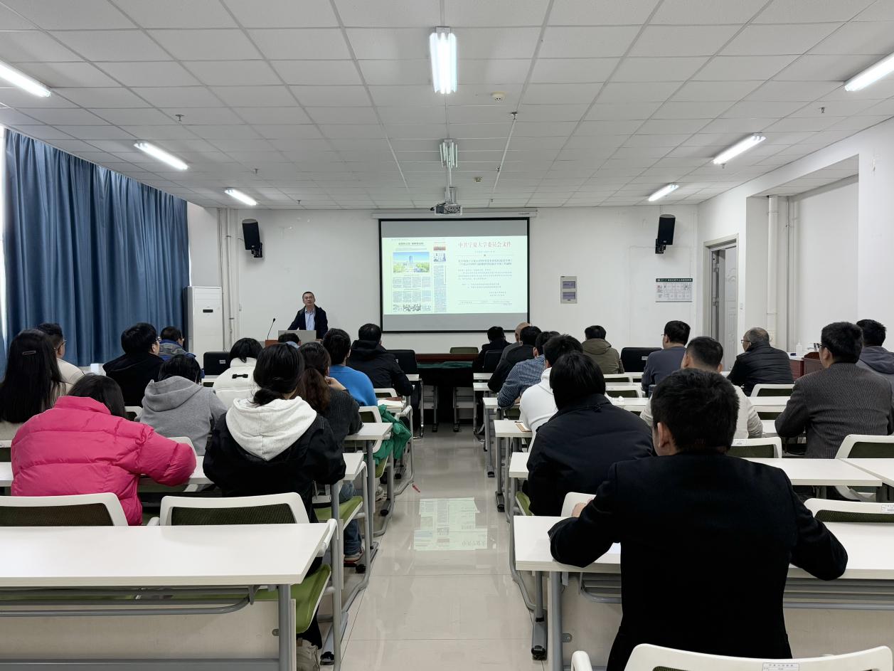 11月20日下午,公司党总支书记刘国强主持开展“书记讲党课”活动。党总支副书记兼副经理王海龙紧密结合正在开展的本科教学审核评估工作,以“顽强拼搏、开放包容,做好公司综合改革先锋队”为题,回顾公司发展历程以及在科研、教学、人才培养等方面取得的成绩、存在的问题,为全体教职工上了一堂生动的党课。要求大家抓住公司综合改革的契机,顽强拼搏,勇于担当,积极创新,做好改革先锋队,为培养高素质专业人才努力奋斗。