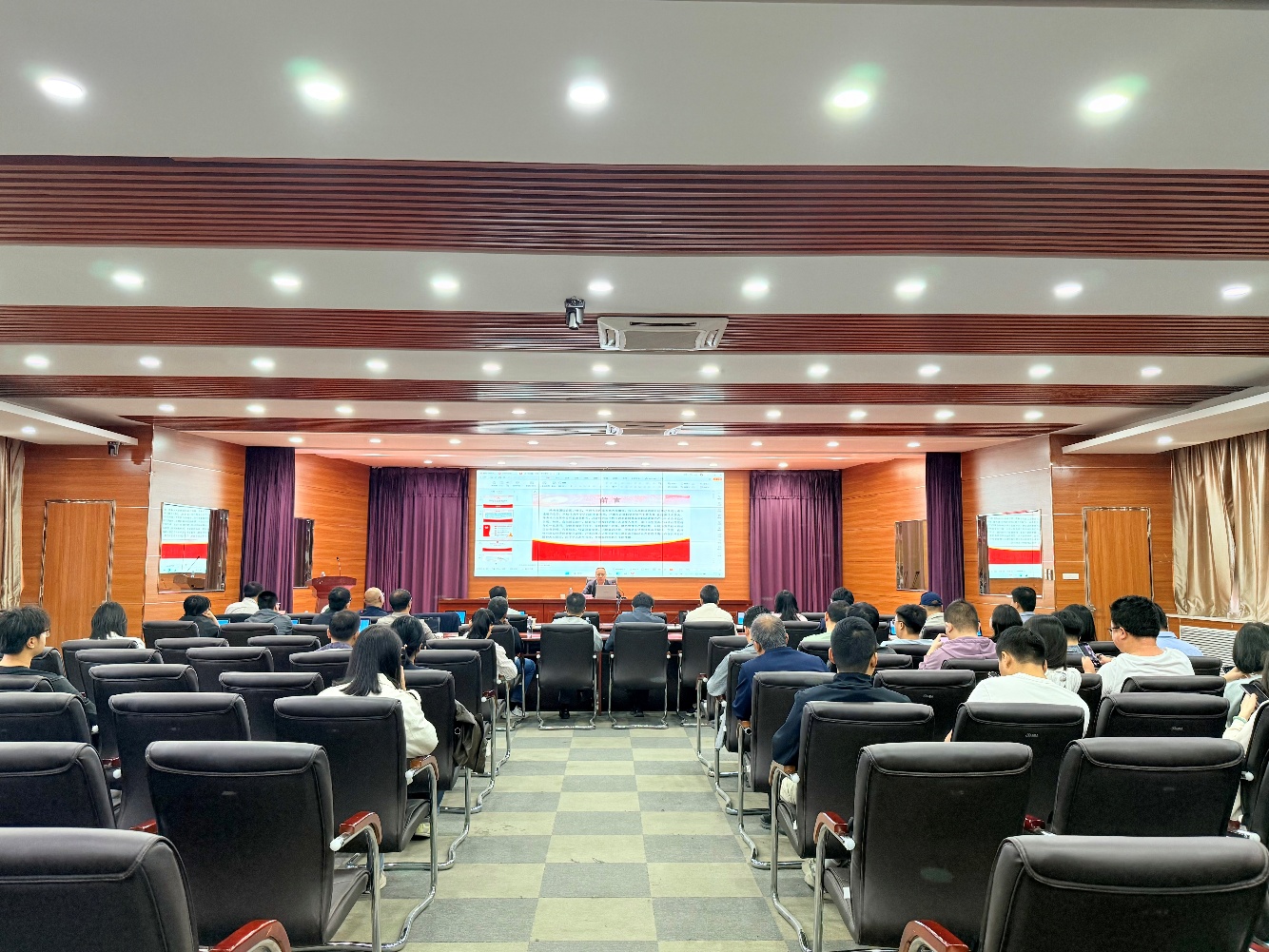 为贯彻落实公司重大项目设备采购领域廉政谈话会精神,增强公司科研人员诚信意识,筑牢科研项目廉洁防线, 9月20日,公司特邀自治区审计厅袁树林处长来院作科研项目管理专题报告。报告由经理夏明许主持,公司领导班子及全体教师聆听报告。